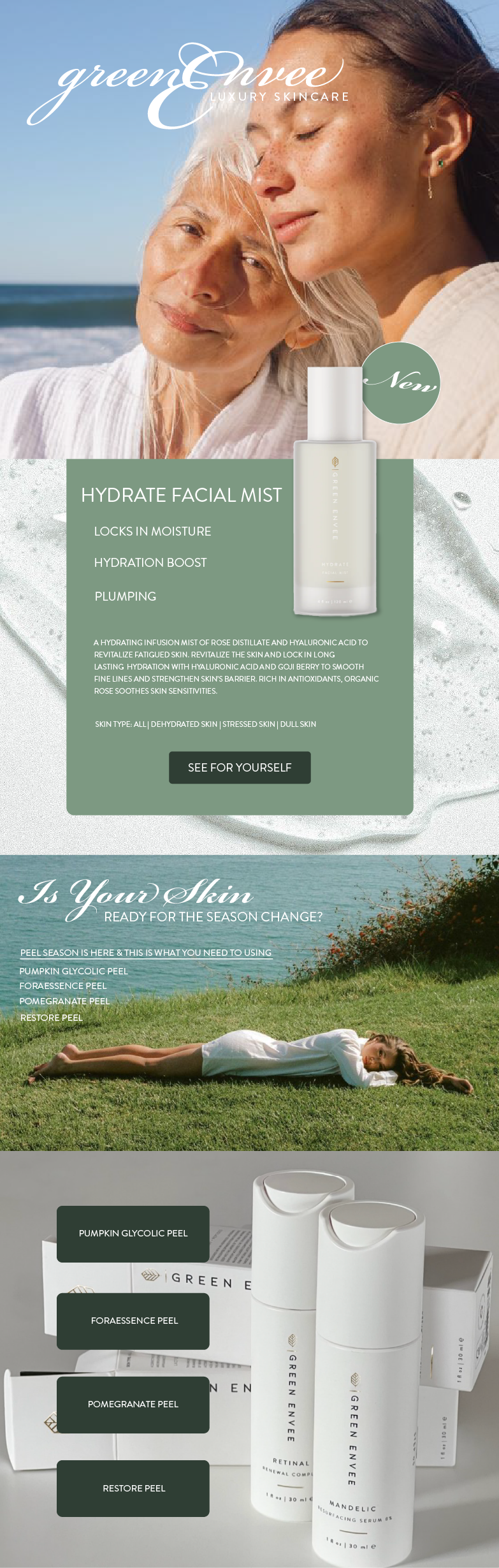 Green Envee’s rebrand was about transforming the brand from a city-centric aesthetic into a California-inspired wellness retreat. The goal: connect science-backed skincare with a holistic, luxurious lifestyle that feels aspirational yet grounded in nature. This rebrand embodies the feeling of warm sunlight, spa rituals, and effortless beauty, calling people to not just use skincare but to embrace the lifestyle it represents.