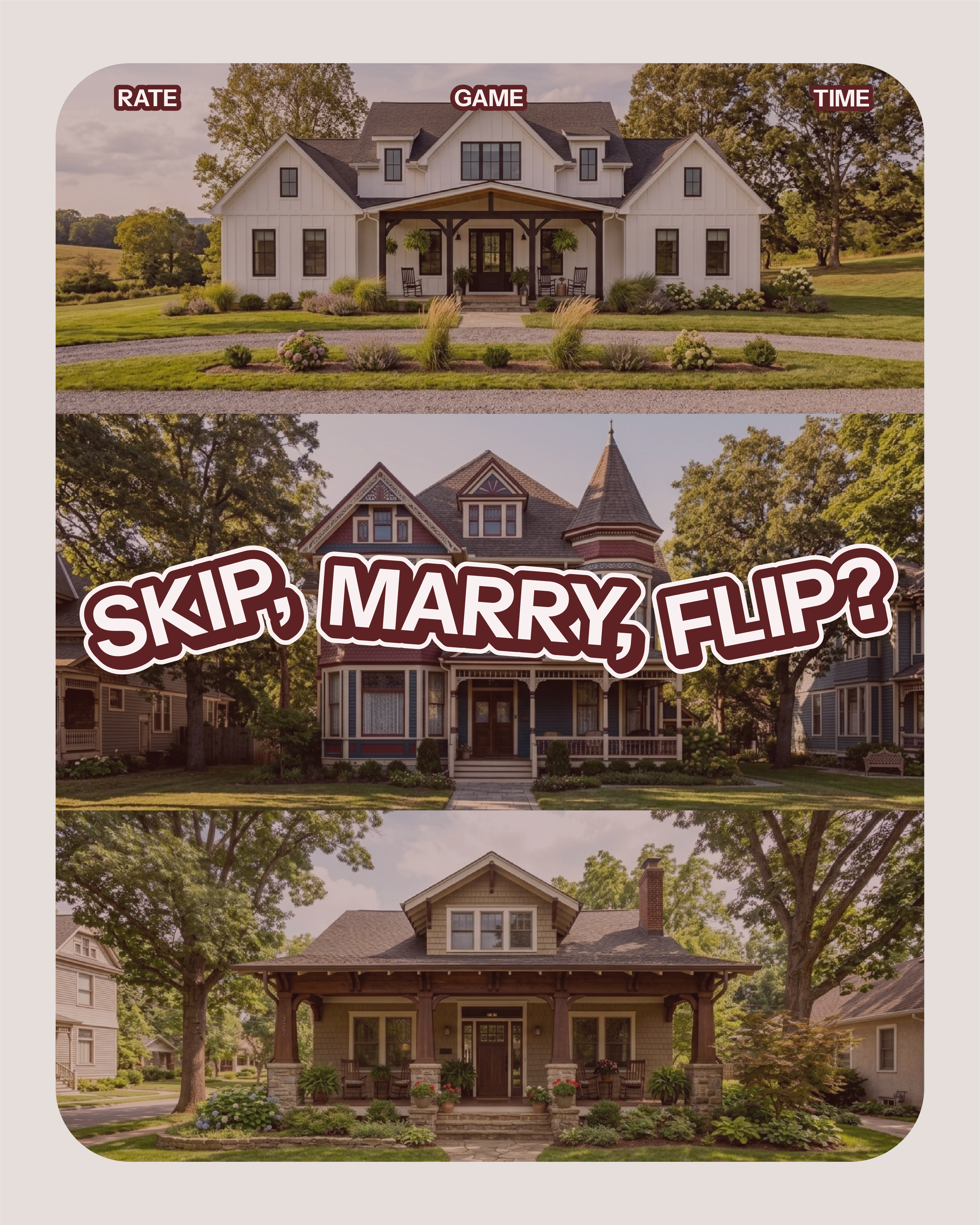 This is a static carousel meant to play off of the game “date, marry, kill” but instead the homeowner version. The goal is to get people to interact with the post in the comments section and spark some live debate on home types.