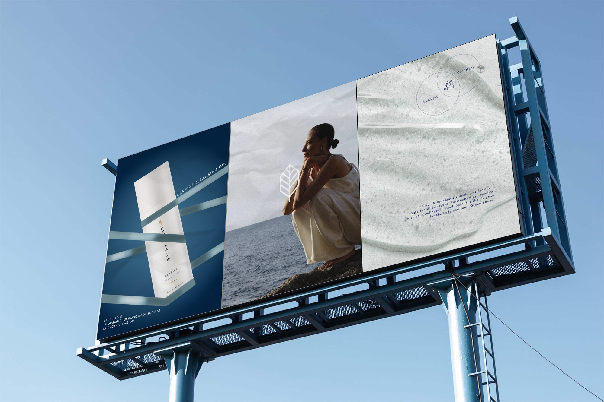 Green Envee is known as a city, minimalistic styled brand and they wanted to do a shift to a more California/beach aesthetic. Here are some out of home designs, as well as social work.